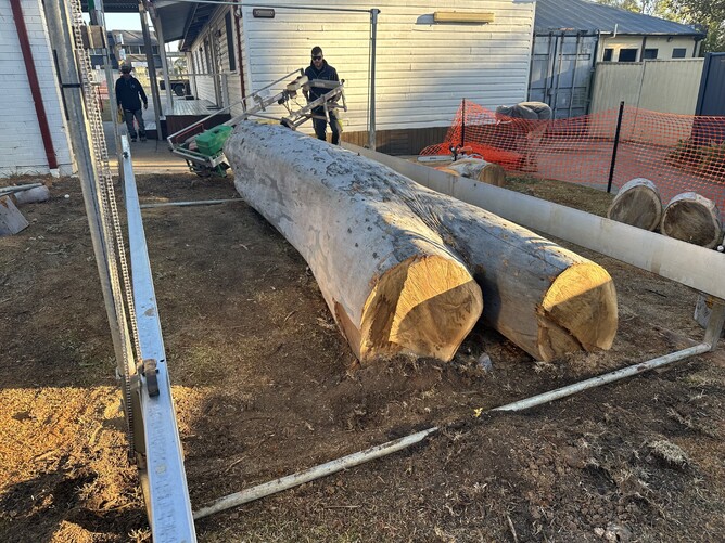Recently we were contact by a church in Seven Hills. They were removing a huge spotted gum tree for safety reasons but wanted to salvage the trunk to use to create furniture for the church and its community once they are seasoned. The log itself was 4.2m long and 1m wide. They wanted to avoid paying large transport fee's taking the log to a sawmill.