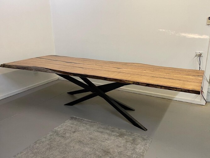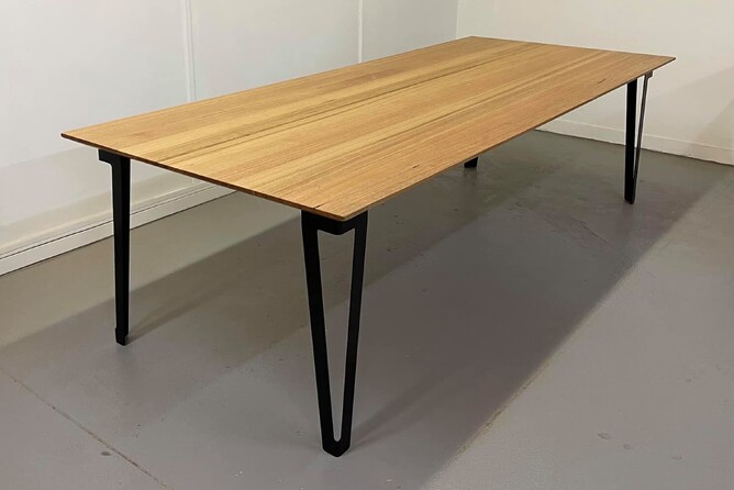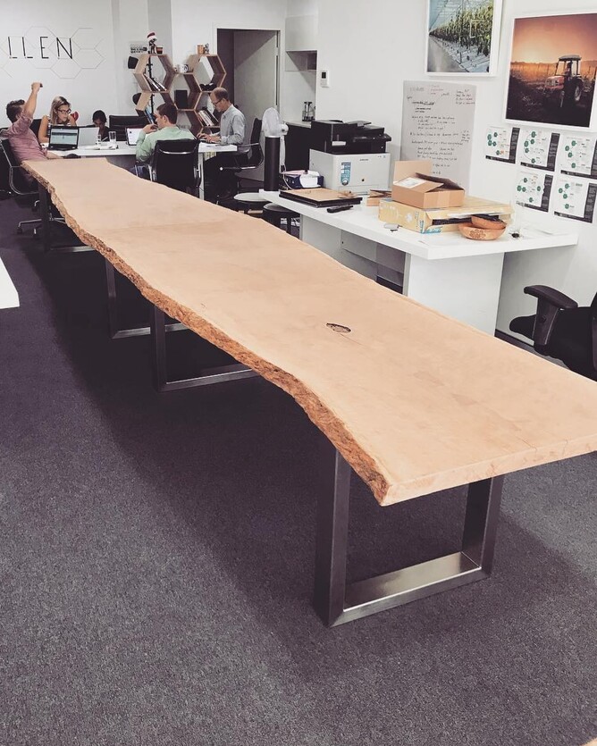 This table has a really interesting story. The company purchased this table raw so they were able to organise a bonding exercise for colleagues in the office to finish it off together. They are a company that has their own bee's wax so they wanted to use their product on the table. This made for any easy maintenance plan for their table. We thought this was a really great idea and we were pleased to be a part of this exercise.