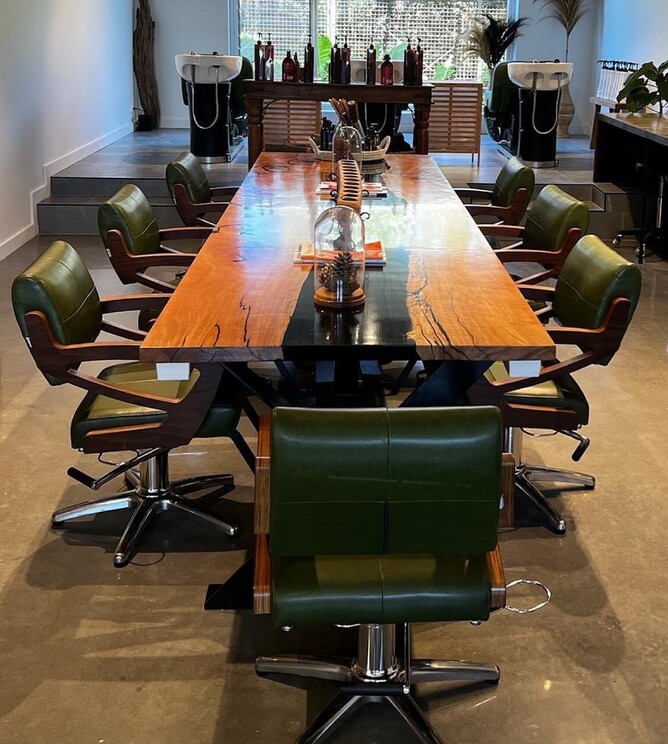 A Hardwood boardroom table is more than just a piece of furniture. It's a symbol of your company's unique values, culture, and vision. A bespoke boardroom table like this can create a sense of community and collaboration. It enhances creativity and productivity within the business by providing enough space for everyone to spread out and brainstorm. It can create an inviting and comfortable space to host meetings, a space to generate new ideas and solutions for your business.